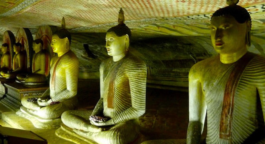 Since its early beginnings, the upper terrace had been continuously in occupation for more than twenty-two centuries down to the present day. The internal area of the five cave temples you see today is about 1000 square metres and one of the largest rock shelters in the south and South east Asian region. Scholars have compared these with the major sites in India such as Ajantha. But they add that these are different in both a distinctly Sri Lankan expression of a board south Asian temple concept and has few parallels elsewhere. Dambulla is undoubtedly the largest, the most dramatic, the best preserved and the most integrated example of this type of Buddhist vihara in Sri Lanka.